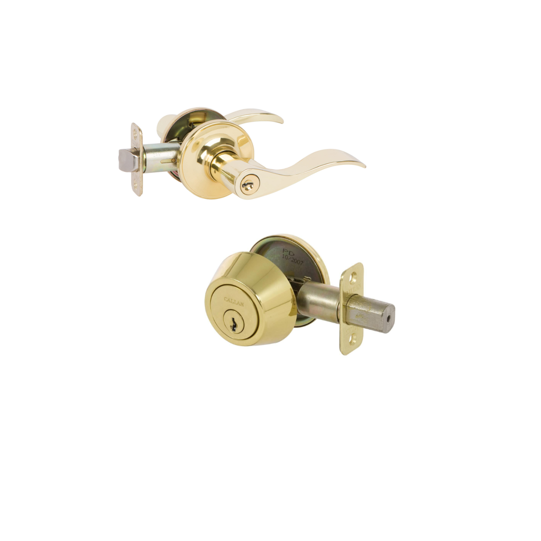 Delaney Bennett Entry and Single Cyinder Deadbolt combo sets. Available in four standard finishes. Custom keying options and bulk purchase price discounts are available. Each set is box packed and complete with latch, strike plates and installation hardware and keys. Each combo set is keyed alike (2 keys provided). Select Key-Alike or Key-Different if purchasing more than one combo set.